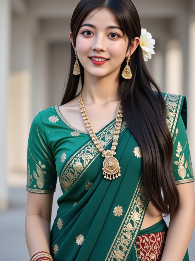Verwandeln Sie Ihre Fotos mit unserem Puja-Bo-Remix-Tool in atemberaubende Kunstwerke im indischen Saree-Stil – mit Basismodellen, Kunststationen, Mädchen, Fotografie und Realismus.