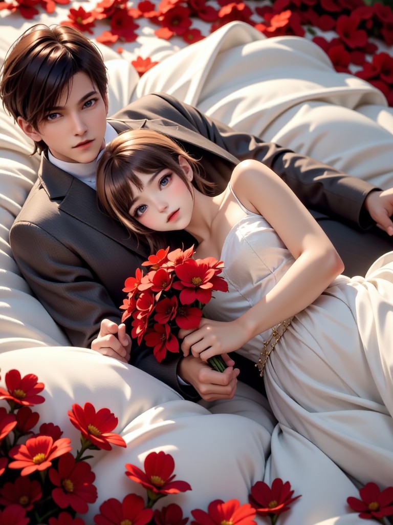 A1. Kunststil-Konverter: Paar, das auf einem Bett liegt 💛💚🥰 | a1.art