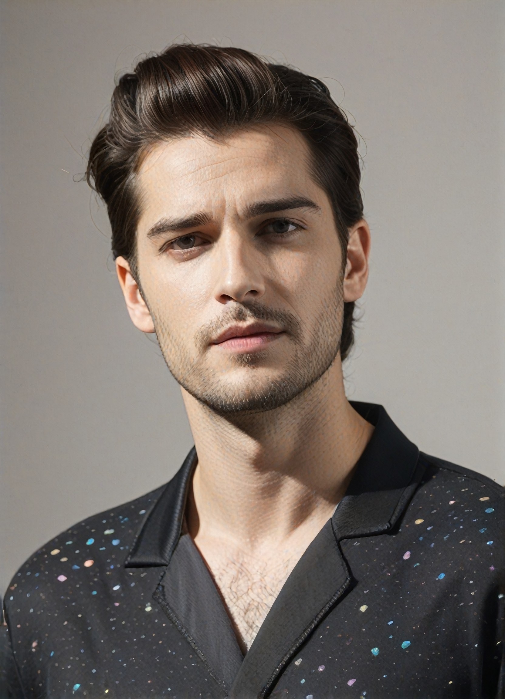 Erleben Sie das virtuelle Tool zur Anprobe großer Frisuren aus den 80er Jahren von a1.art. Holen Sie sich realistische Porträtfotografien von sich selbst in einer Bluse, die zu Ihrer Frisur und Haarfarbe passt. Probieren Sie verschiedene Stile aus und finden Sie Ihr perfektes Aussehen.