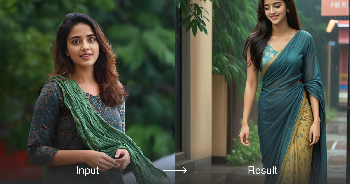 Wandeln Sie Ihre Fotos mit a1.art in faszinierende traditionelle indische Kleidung um. Schnelle und einfache stilistische Umwandlung.