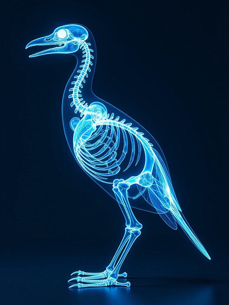 Generate minimalist X-ray art of any photo with clean backgrounds, precise skeletal outlines, and subtle glows in a versatile photorealism style.