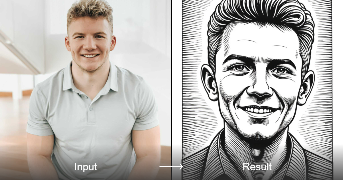 Transform your selfies into stunning, high-contrast, black and white linocut portraits with our versatile and adaptable style converter.
