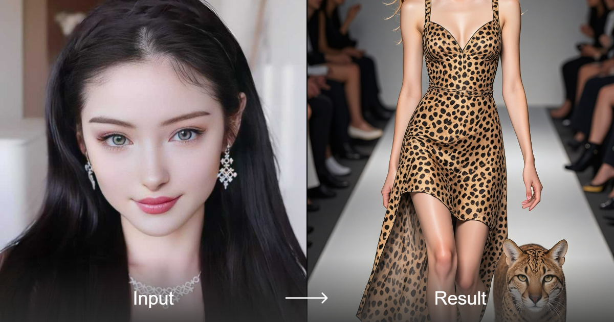 Transform your photos into vibrant, game character-inspired, animated, anime, Y2K aesthetics, digital, and neon art with our Leopard Print Fashion style converter.