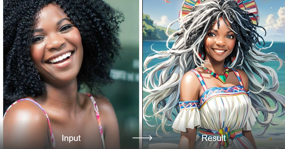 Crea pinturas de anime con el convertidor de estilo Chica Anime en la Playa, que presenta chicas de anime únicas y hermosas en entornos costeros.
