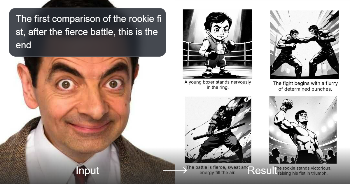 Convierte imágenes en estilo de historieta de cuatro viñetas utilizando el modo Maestro y el formato de salida de anime. Combina elementos de diferentes estilos para obtener resultados únicos.
