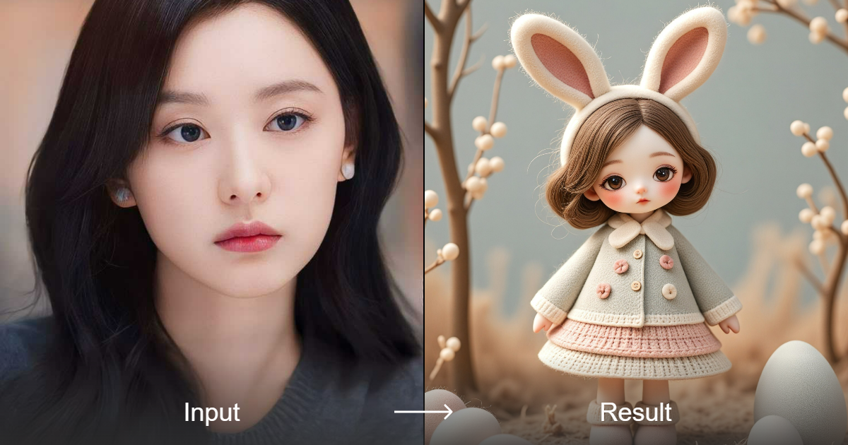Conejo de Pascua de fieltro P2 - Figura en diseño 3D Chibi en estilo de caja sorpresa | a1.art