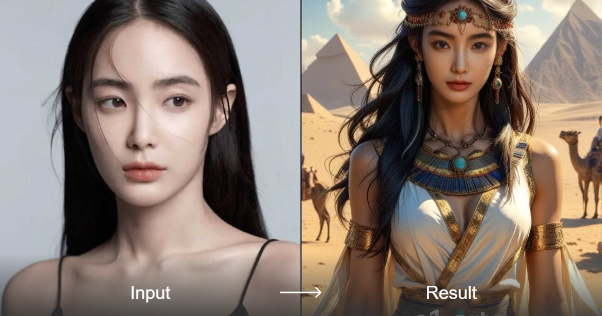 Convierte rápidamente tus fotos en impresionantes atuendos del antiguo Egipto utilizando a1.art. Logra un aspecto histórico con solo unos pocos clics.