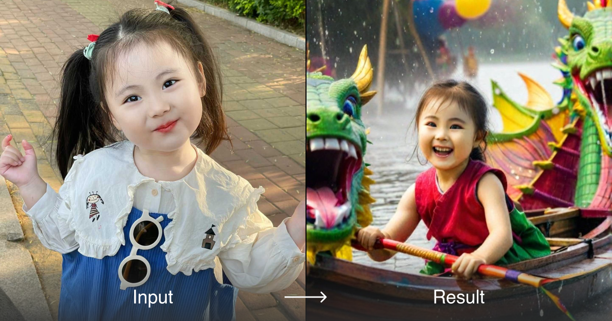 一个划着龙头小舟的小女孩,在节日的欢乐气氛中,龙舟旁水花飞溅,远处水雾朦胧形成了,她的脸上洋溢着节日里欢快的气氛,嘴里高呼胜利.