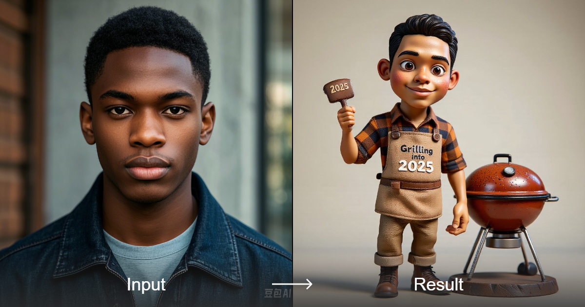 Cree imágenes de caricaturas 3D en el estilo de Año Nuevo y Barbacoa con el Conversor de Estilo de Caricatura 3D 9. Los modos Maestro, 3D, Juguete y Lindo están disponibles. El formato de salida es una imagen en los modos Maestro, 3D, Juguete y Lindo.