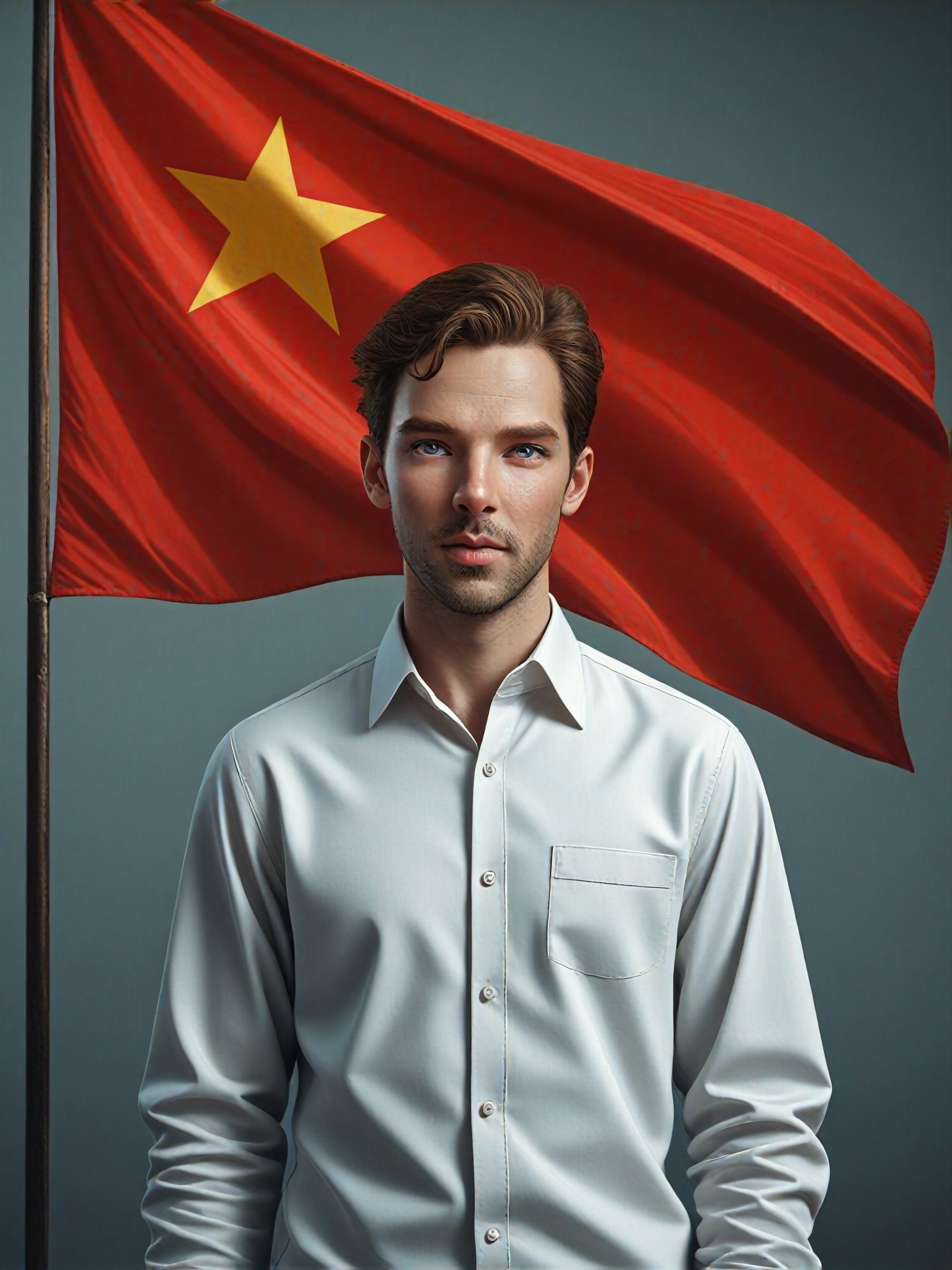 Mejora tus fotos con la bandera del Norte de Vietnam. Este convertidor de estilo agrega una bandera ondeando detrás de la figura, proporcionando un sentido de patriotismo y orgullo. Funciona bien con varios formatos de imagen, incluyendo Master, Animación, Destacado, CG 1.0, CG 2.0, Pintura Digital e Ilustración.