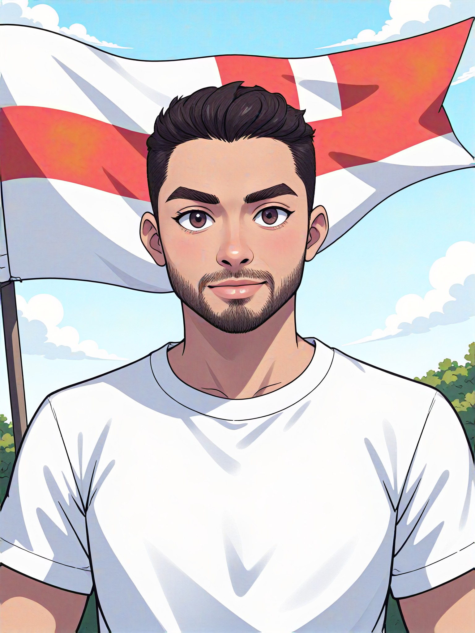 The A1 Art Style Converter allows you to add the Johannasburg flag to your photos in a few simple steps. Whether you're looking for a featured, animation, CG 2.0, CG 1.0, Master, or Illustration, this tool has got you covered. The output format is example: A person, upper body, wearing a white shirt, standing and smiling, A huge johannasburg flag is flying behind the figure.