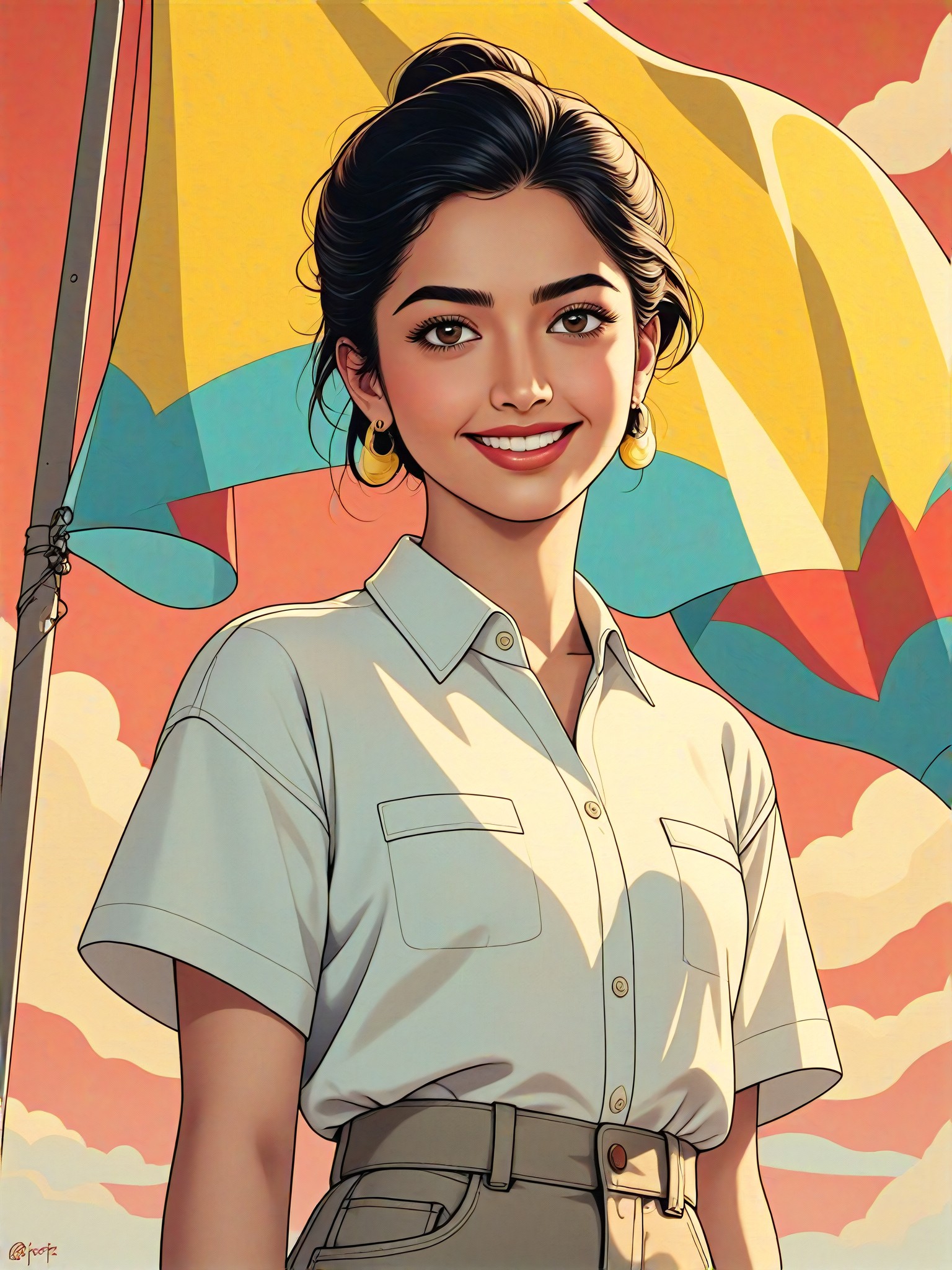 Mejora tus fotos con una bandera horizontal vibrante en amarillo, azul y rojo. Este convertidor de estilo es perfecto para crear imágenes destacadas, animación, CG 2.0, CG 1.0, maestro, ilustración y pintura digital.