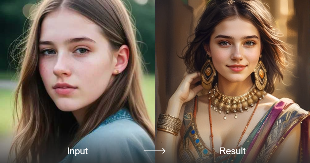 Transform your images into stunning Indian women portraits with artistic styles including painting, watercolor, sketch, and digital painting. Enhance striking features and achieve divine beauty with high-quality results.