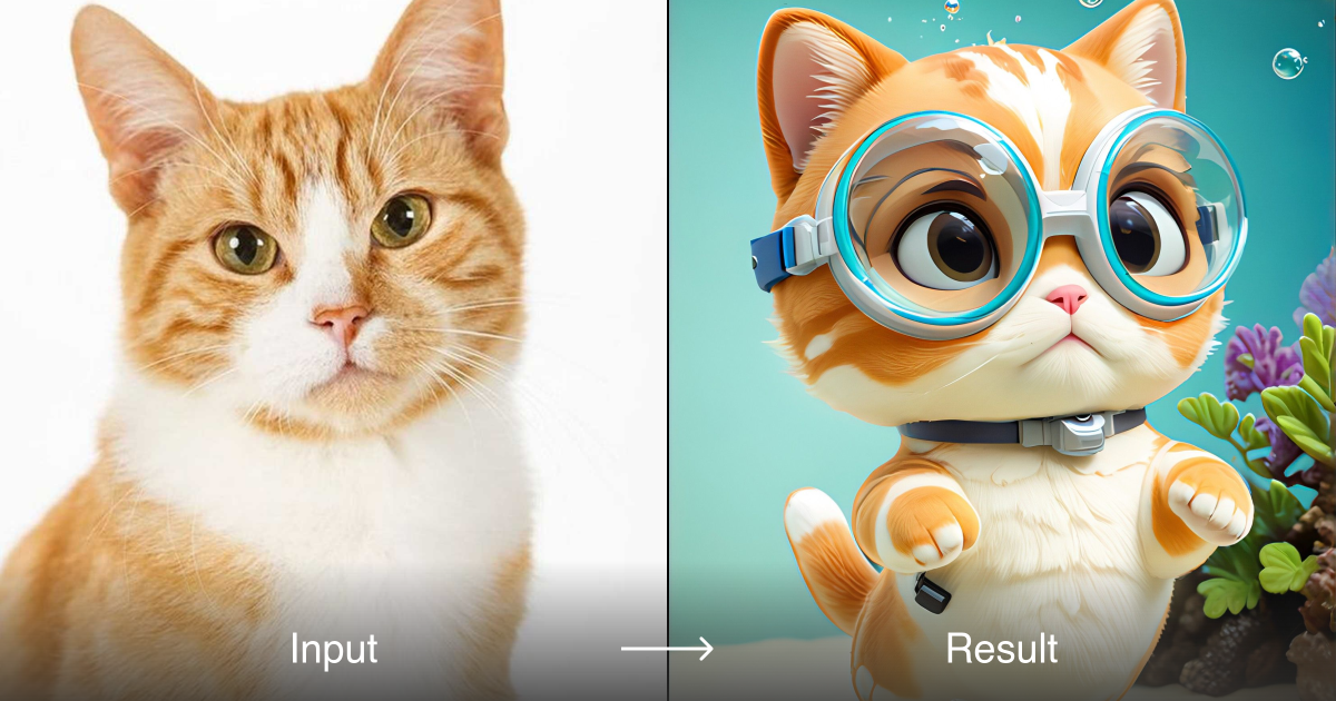 Convert cat photos into adorable underwater scenes with a1.art. See your pet in a whole new aquatic style!