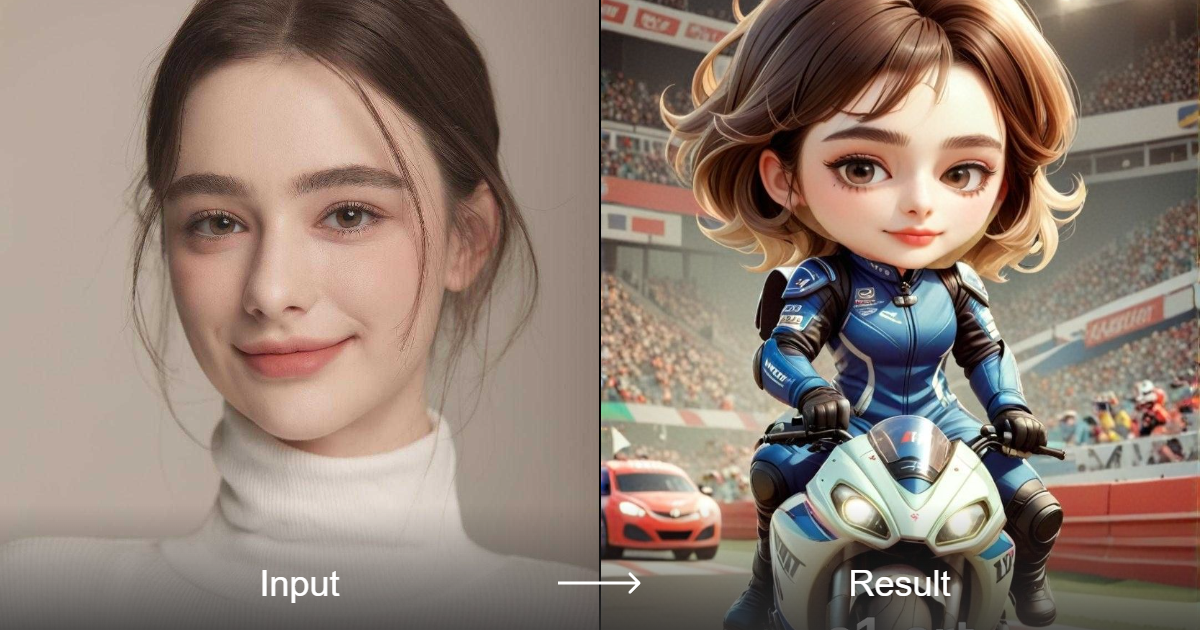 Create adorable 3D images of your motorcycle racer with the A1 Art style converter. The output format is perfect for social media, web design, or print.