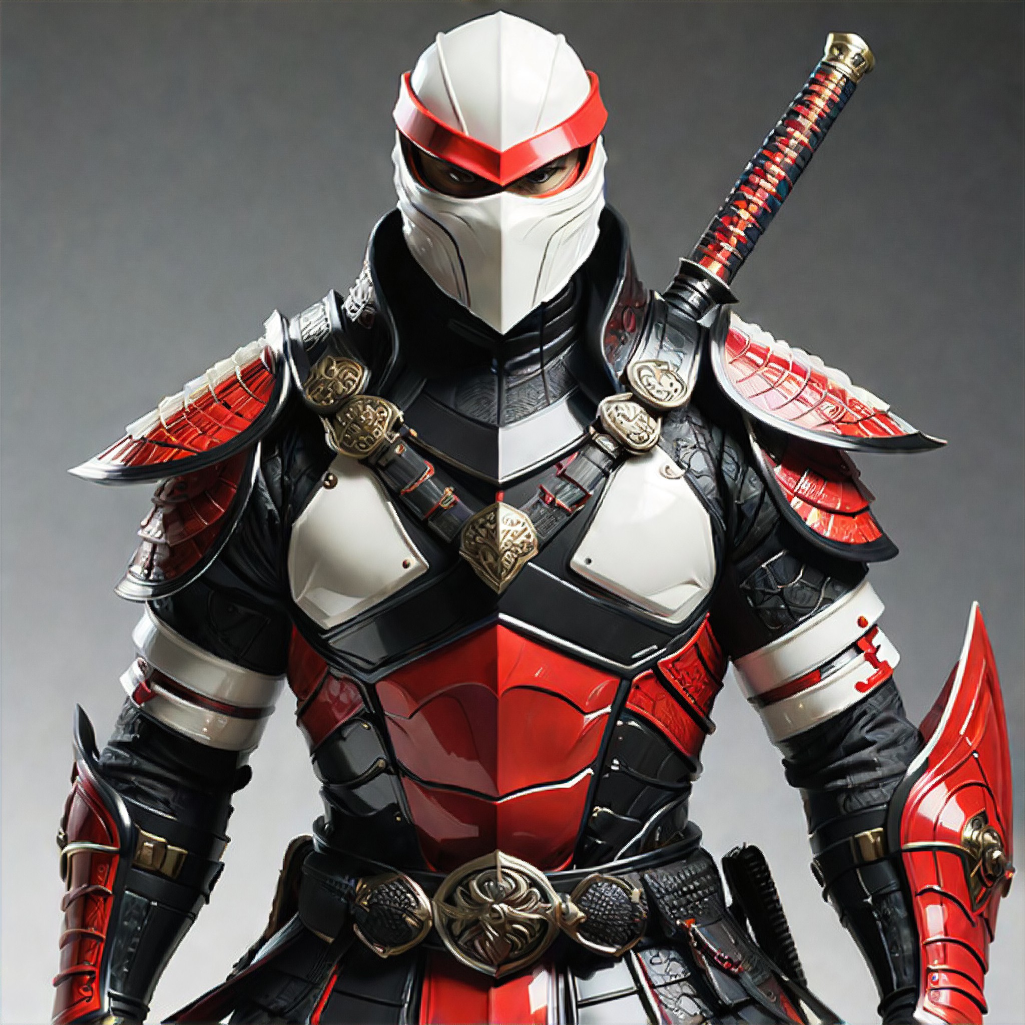सफेद और लाल चीनी मिट्टी के बरतन कवच के साथ निंजा