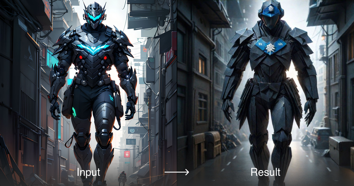 Effortlessly convert your robotic character's appearance from futuristic to stealthy with a1.art. Achieve detailed transformations in seconds.