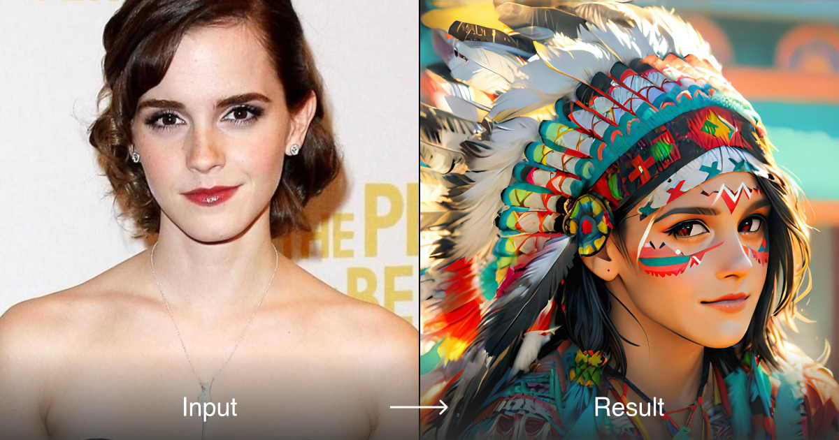 Transform your photo from modern fashion to vibrant Native American attire with a1.art. Quick and simple process.