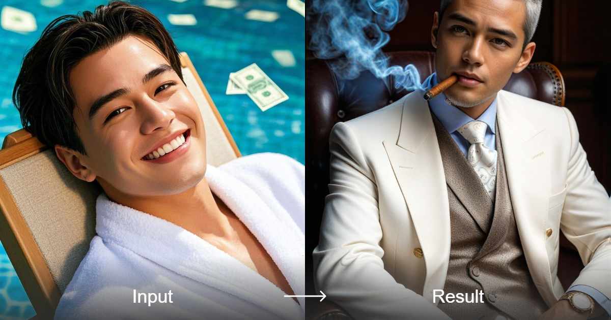 Convert your image into a portrait, professional photo, or realist style with our handsome cigar smoker style converter. Get high-resolution photography with our expertly crafted image generation technology.