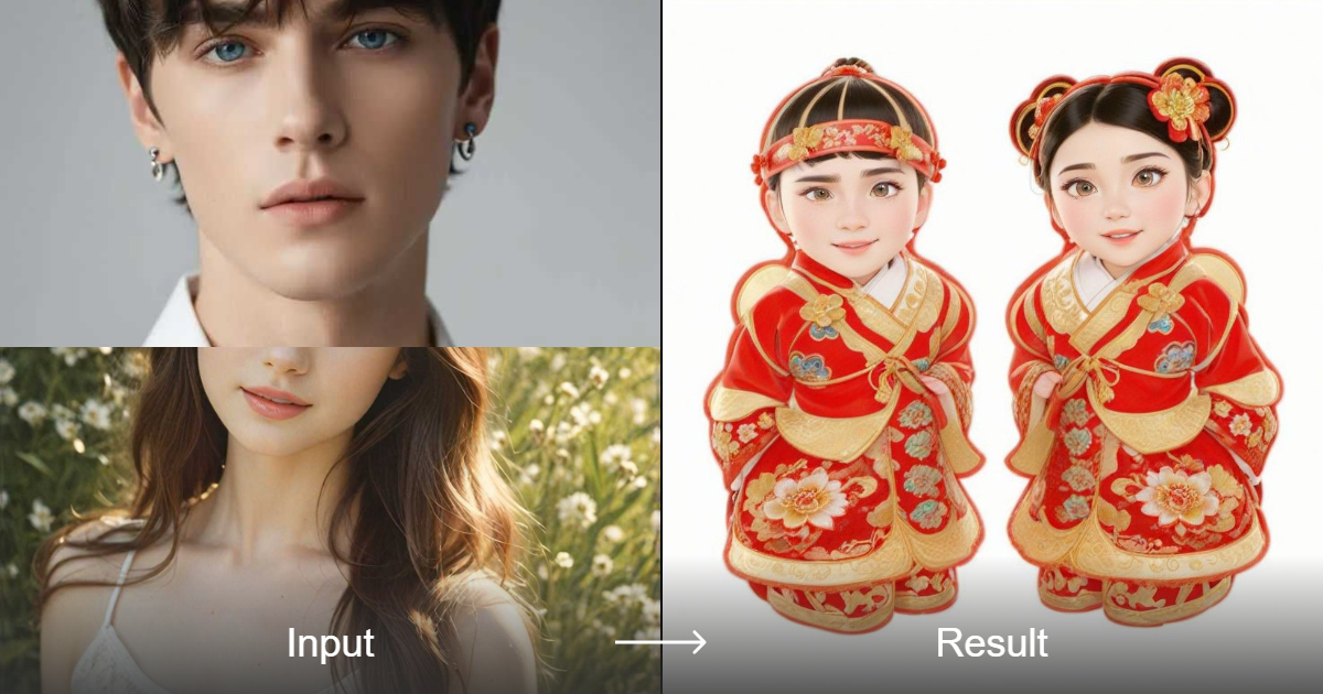 The New Year Painting Baby style converter creates adorable images of babies dressed in traditional Chinese attire, complete with adorable outfits and accessories, set against a backdrop of festive fireworks and decorations for the Spring Festival.