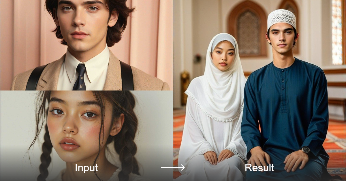 The Muslim Worshippers 02 style converter generates authentic and professional portraits, group photos, and realist photography of Muslim worshippers attending specific services in a mosque. The style is characterized by real, frontal sitting, with the figure occupying half of the frame and the face being frontal.