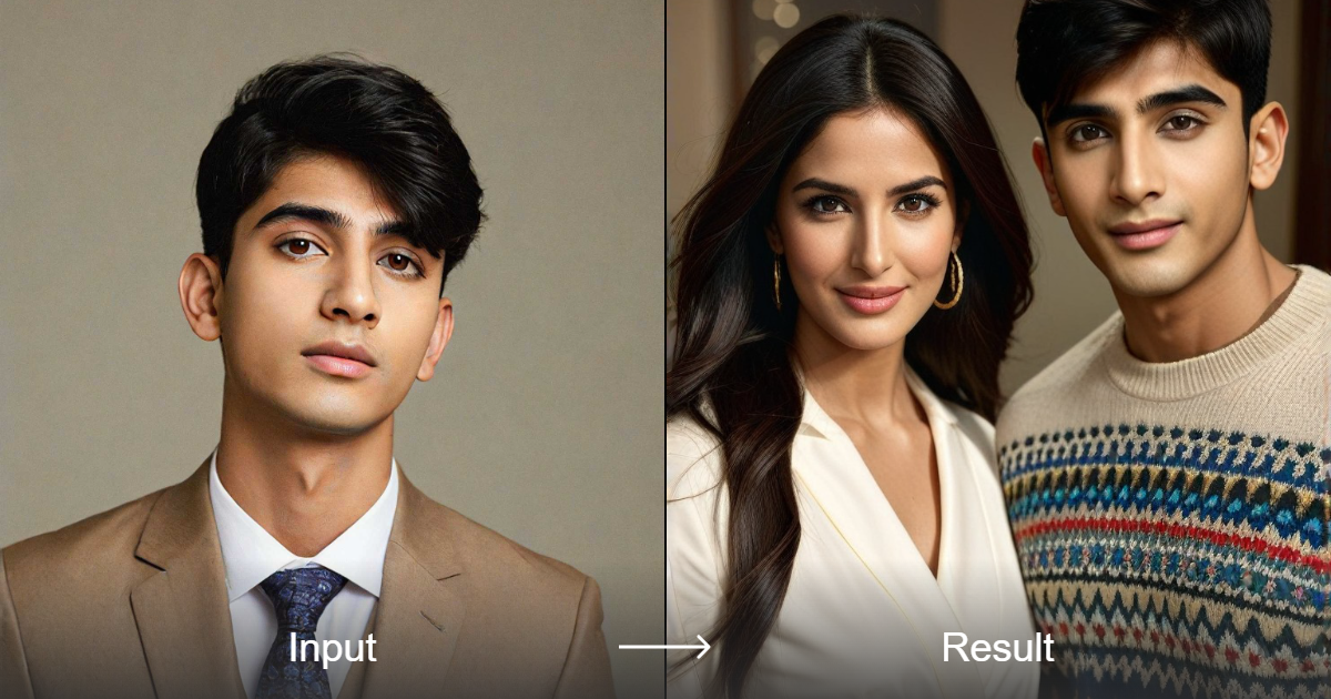 एक पुरुष कैट्रीना कैफ के साथ पोज़ करता है - स्टाइल कनवर्टर | a1.art