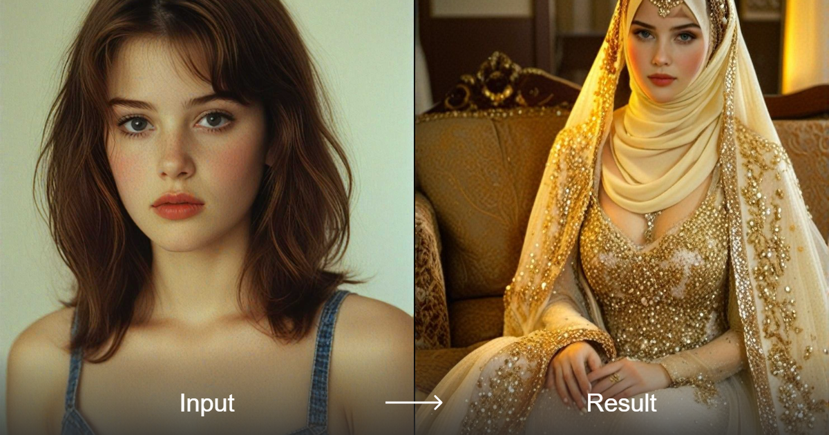 Create professional and realistic portrait photos of Muslim women in luxurious attire with a1.art's style converter. Get stunning results for your photography projects.