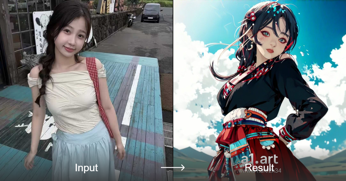 Buat gambar CG, 2.5D, lukisan, dan ilustrasi yang menakjubkan dengan konverter gaya Gadis Tibet.