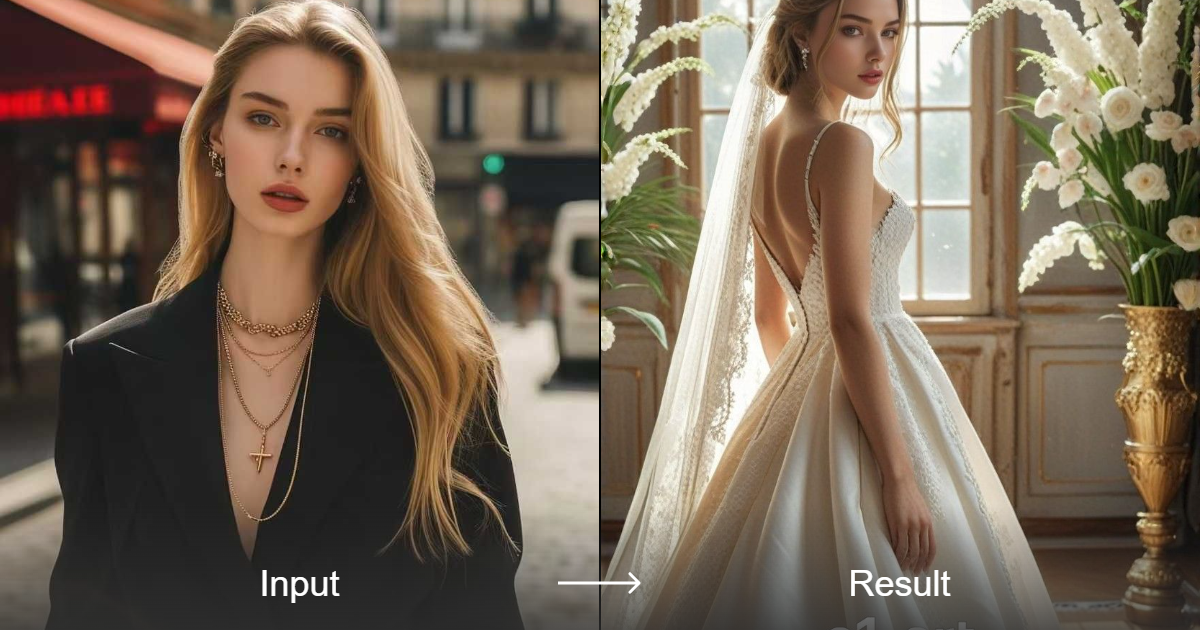 Buat foto pengantin wanita yang menakjubkan dan profesional di pernikahannya dengan konverter gaya a1.art.