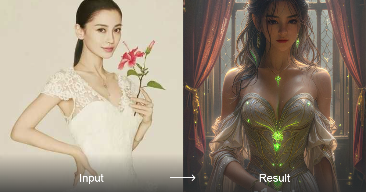 Mudah mengubah foto pengantin modern menjadi gaun fantasi yang menakjubkan dengan a1.art, menyediakan transformasi berkualitas tinggi dan imajinatif hanya dalam beberapa klik.