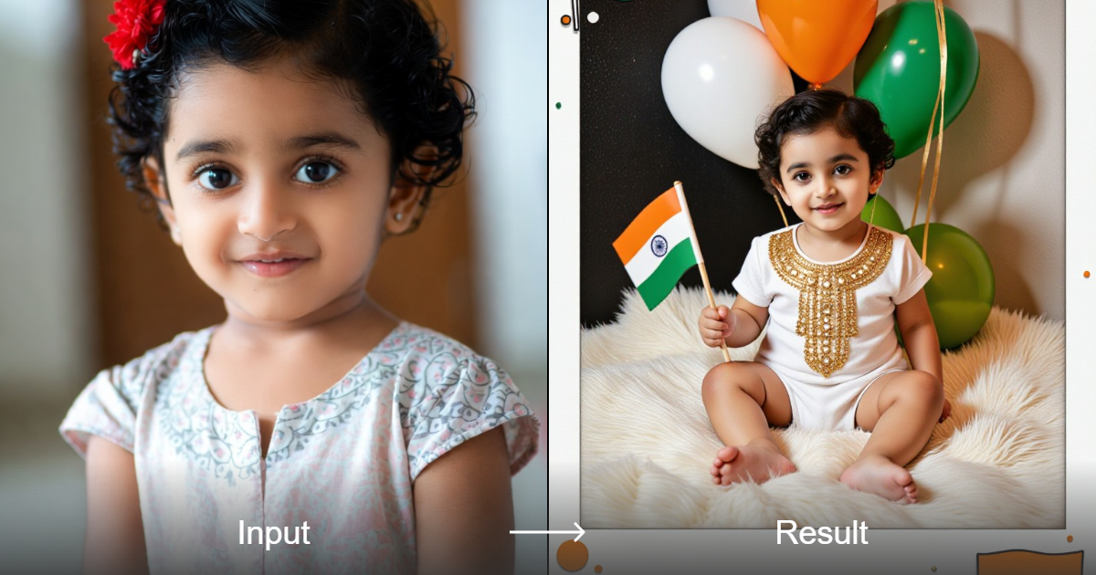 Transform your baby photos into nostalgic Polaroid-style images with vintage tones, textures, and playful Indian-themed details using a1.art's free AI generator.