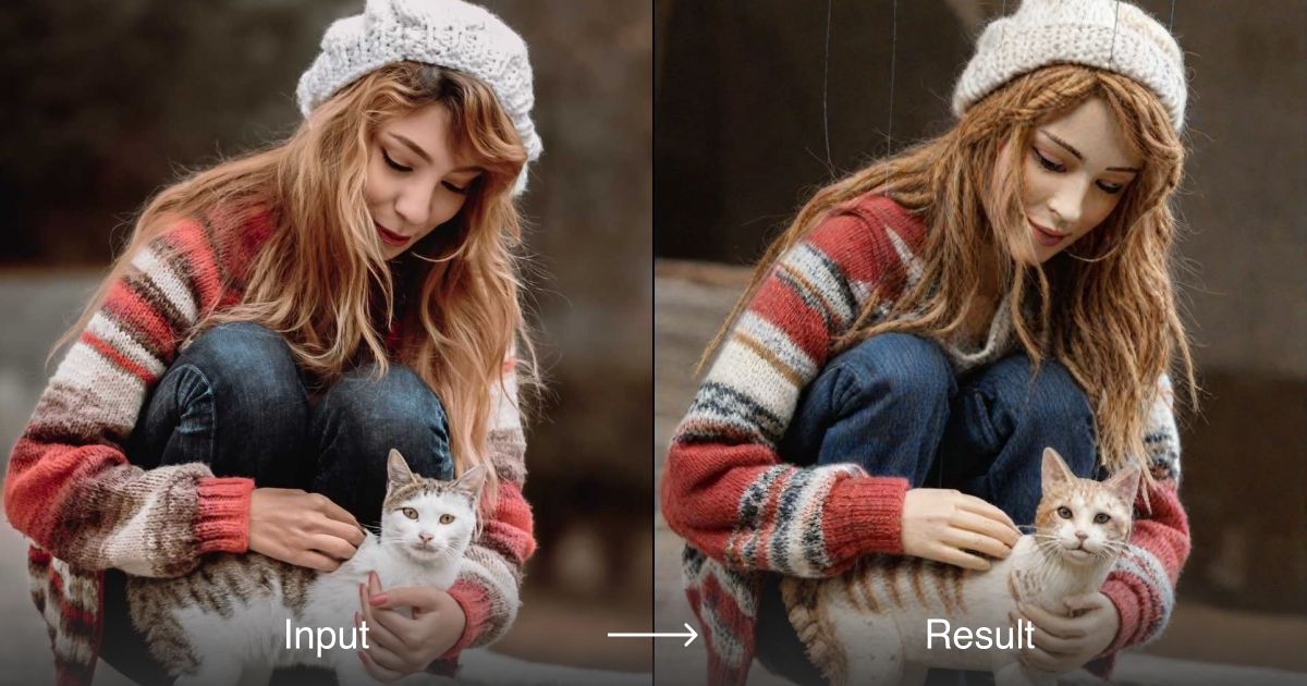 Ubah foto Anda menjadi gaya boneka yang sangat rinci dan realistis dalam hitungan detik dengan editor foto AI dari a1.art.