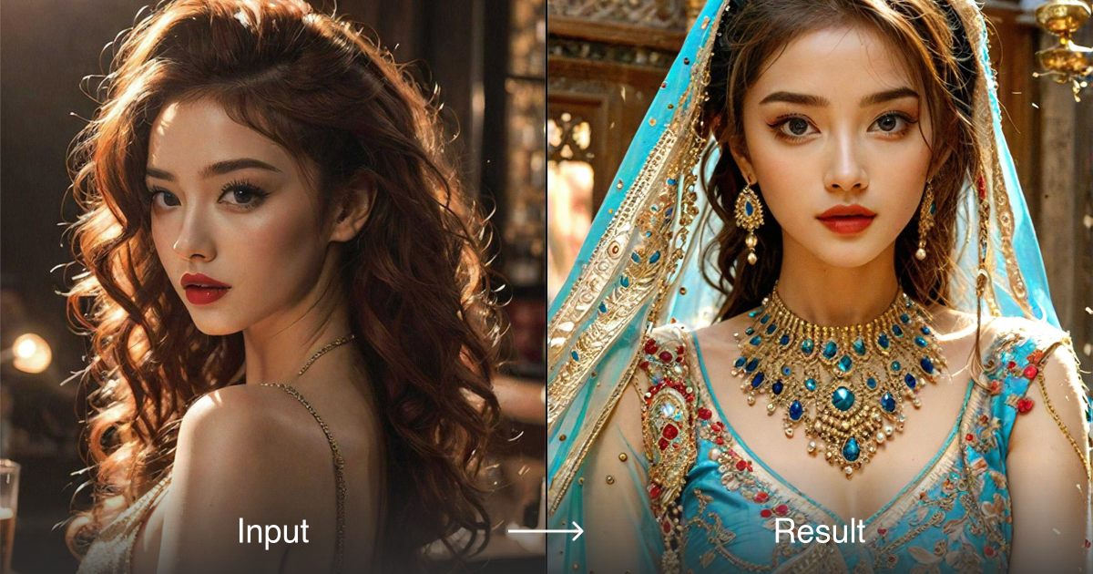 Mudah ubah foto Anda menjadi pakaian tradisional India yang menakjubkan dengan a1.art. Rasakan transformasi budaya hanya dalam beberapa klik.