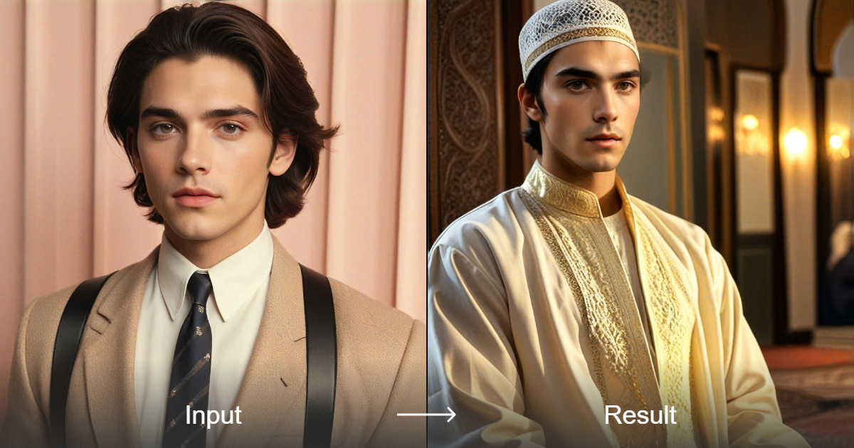 Buat potret pria Muslim yang otentik untuk keperluan profesional dan pribadi dengan Konverter Gaya a1.art.