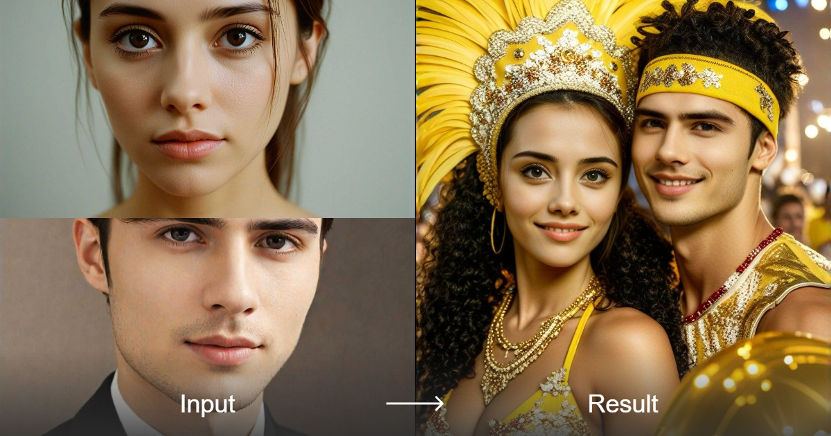 Rasakan atmosfer penuh kegembiraan dari sebuah karnaval dengan gaya foto kelompok unik kami. Konverter gaya kami akan menangkap esensi pasangan karnaval dengan detail yang menakjubkan, serta warna dan tekstur realistis yang akan membuat mata Anda berbinar.