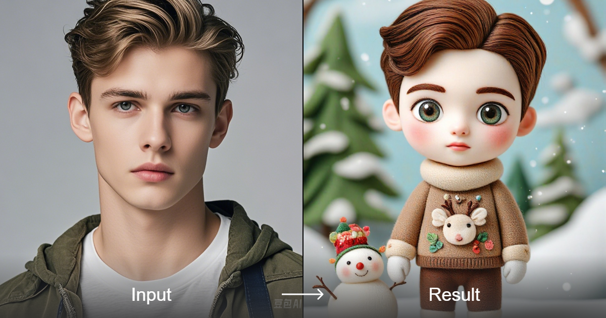 The 9-3D Cartoon Style Converter generates adorable and charming images of chibis in various styles. The Little Deer Horn Sweater style converter adds a playful and whimsical touch to any image, creating a delightful scene in a snowy forest with a decorated snowman nearby.