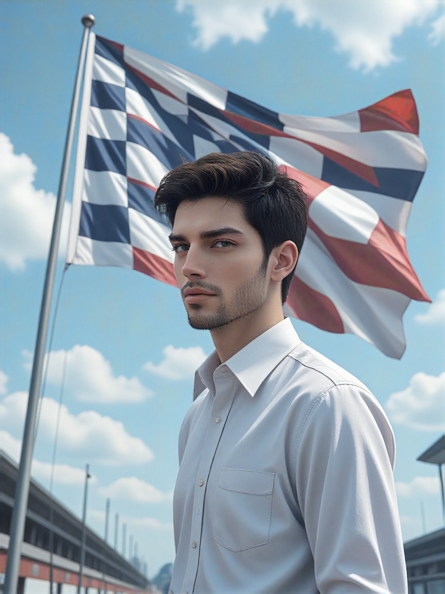 Tingkatkan foto apa pun dengan bendera balap yang terbang di latar belakang.
