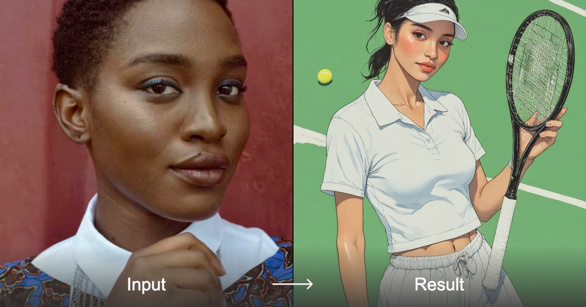 Ubah selfie Anda menjadi lukisan digital yang menakjubkan dengan converter gaya selfie raket tenis kami.