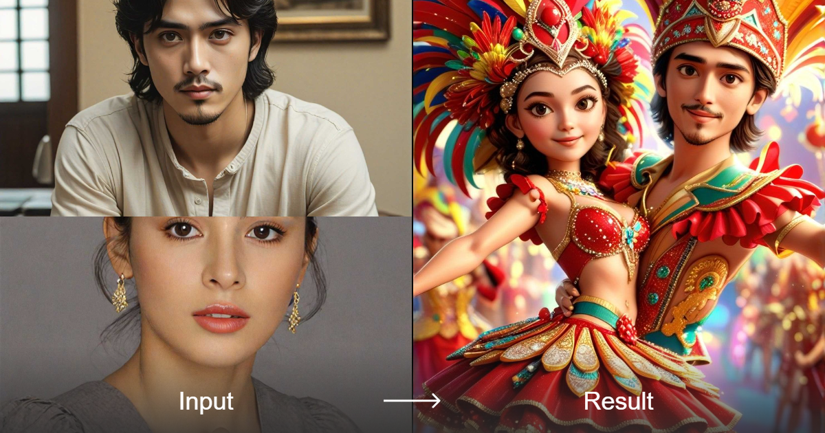 a1.art の革新的なスタイル変換機能を使えば、あなたの写真をかわいらしい3Dで鮮やかなサンバ風カップルのアニメ風画像に変身させることができます。細部にまで Brazilian Carnival の魔法を体験してください!