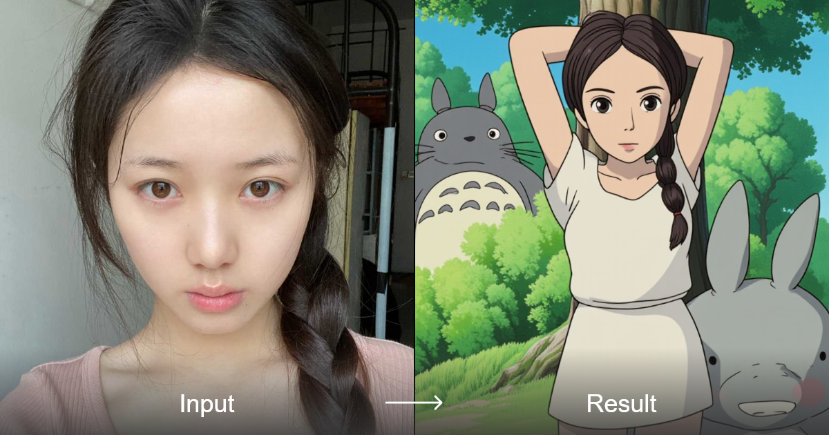 あなたの写真をトトロや優しい色合い、詳細なアートが特徴のジブリ風アニメーションに変えてください。