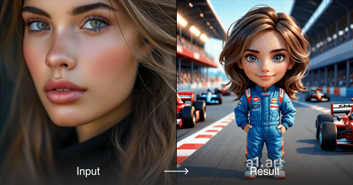 Generate stunning portrait, professional photo, and 3D images in a cute and realistic style with the Olympic Racing Driver Video style converter.