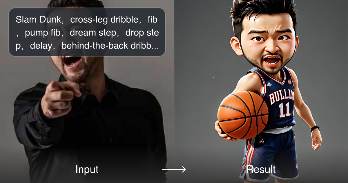 Use a1.art to turn your everyday photo into a dynamic cartoon basketball player image. Quick, easy, and high-quality results.
