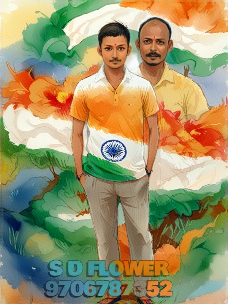 A1.Art India Flag Illustration Remixer: Create stunning digital portraits with autumnal watercolor and healing aesthetics, perfect for artistic expression and cultural celebration.
