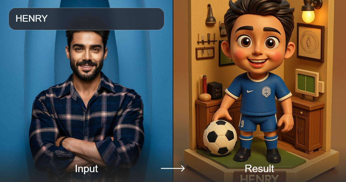 Generate dreamy, photorealistic, toy-like imagery, miniature effect, and cute footballer scenes using our advanced 3D Footballer style converter.