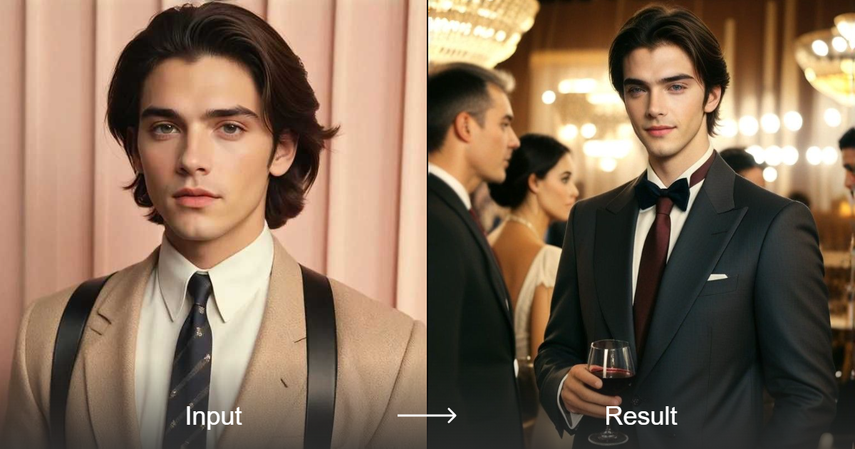 Elevate your cocktail party portraits with a1.art's realistic photo style converter, featuring detailed and lifelike men's portraits in a photo-realistic base.