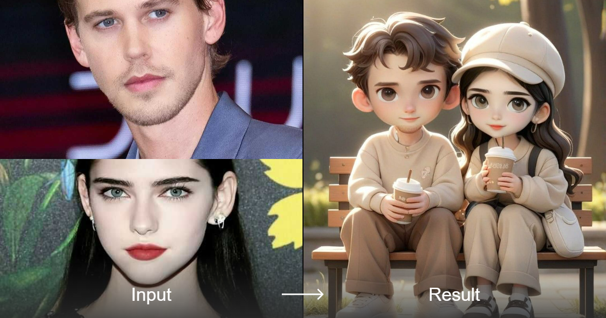 Convert your photos into a cute and adorable beige milk tea couple style with a1.art.