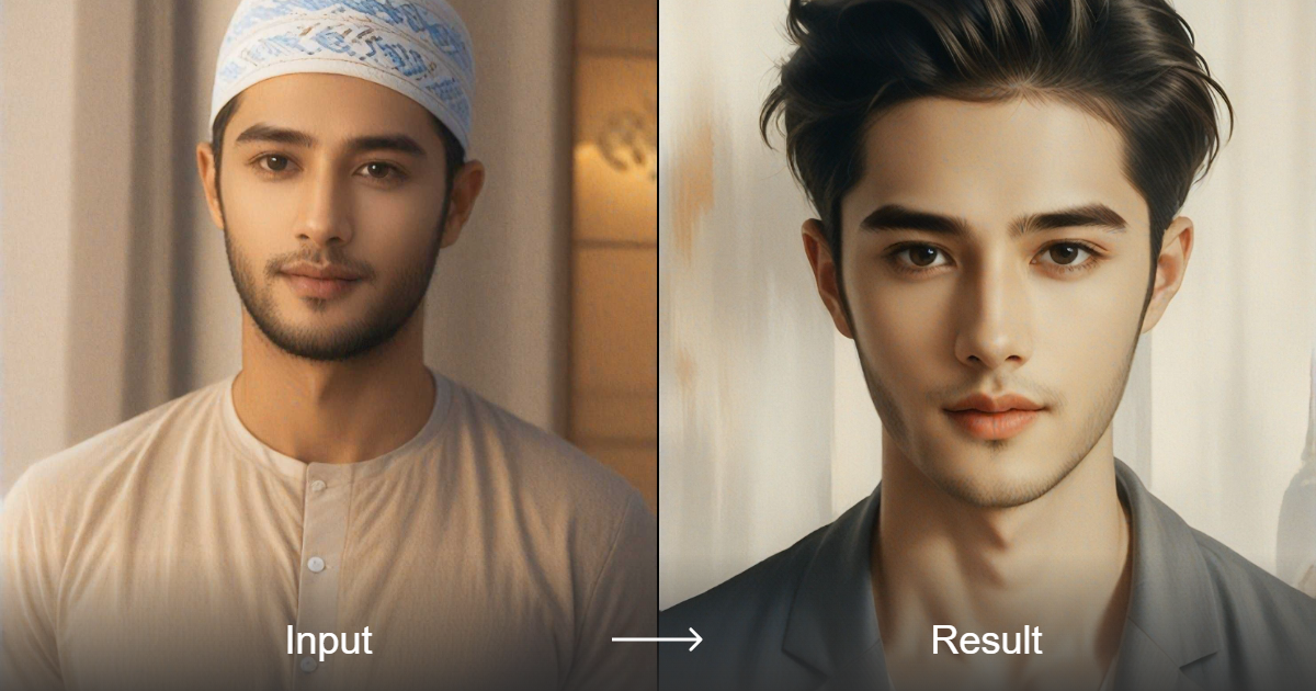 Artistic style converter that transforms real photos into oil painting portrait art with a focus on realism and photorealism.