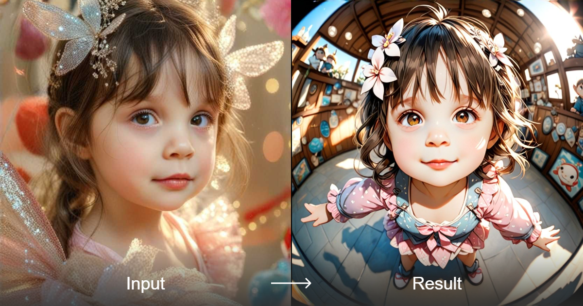 The Fisheye Baby Photo style converter creates stunning digital paintings and illustrations with a unique fisheye lens effect, perfect for baby portraits and headshots.