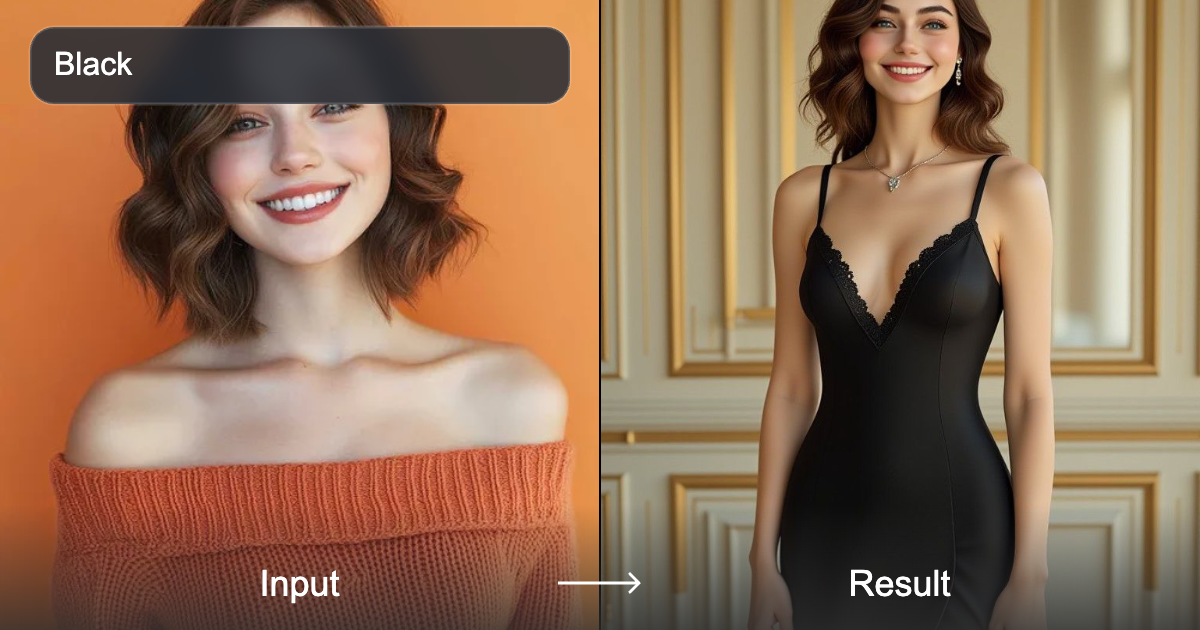 The Silk Dress Style Converter is an AI image generator that creates 3/4 full body shots of women in elegant silk dresses, with diamond earrings, rings, and necklaces. The dress has a deep V-neckline and delicate lace trim, and the high slit on the right side reveals the woman's slender legs. The background is a gorgeously decorated interior environment with exquisite carvings and gold decorative lines on the walls, creating a noble and elegant atmosphere. The lighting is natural and soft, and the characters are real, adding a warm feeling to the whole scene.