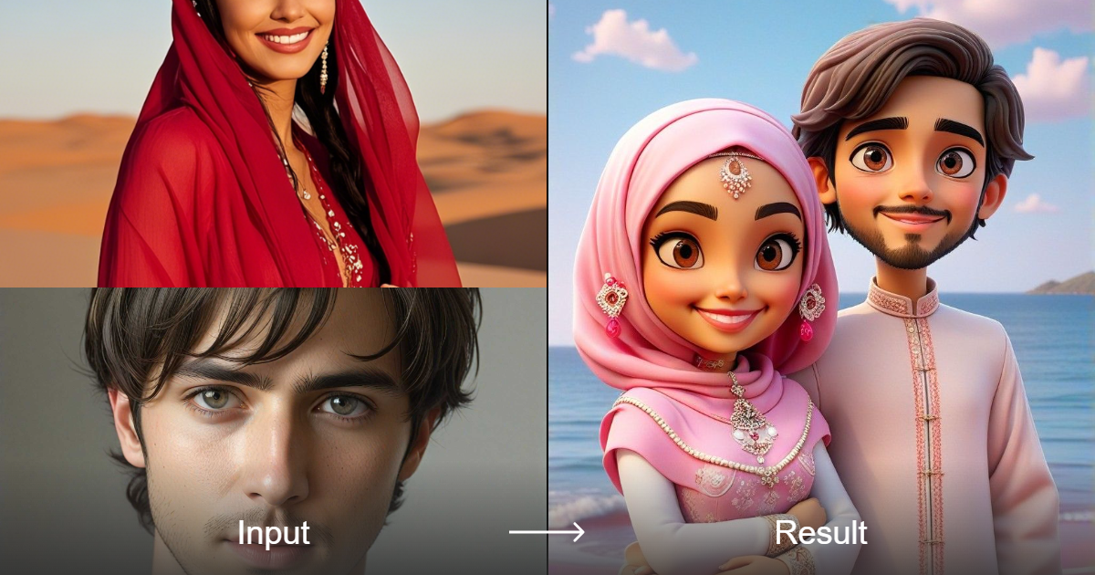 The Style Converter creates cute and charming images of a Muslim couple on the beautiful island of Komodo. With options for group photos, 3D images, and traditional Muslim attire, this converter can bring your vision to life.